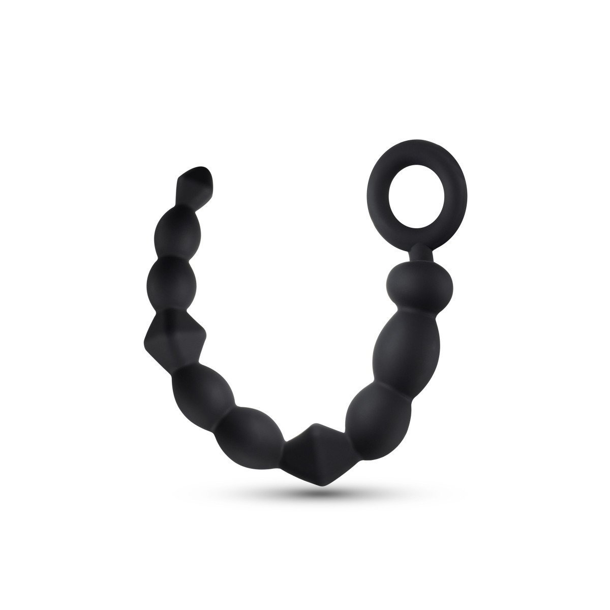 Analiniai karoliukai „Beginners Anal Beads“ iš „Anal Adventures“ yra pagaminti iš lankstaus ir švelnaus, juodos spalvos silikono. 21,6 cm įskverbiamo ilgio grandinėlę sudaro 10, skirtingo skersmens karoliukai, išsidėstę didėjančia tvarka. Kiekvienas karoliukas yra skirtingos formos, todėl įskverbimas bus dar labiau jaudinantis. Sekso žaislo gale yra kilpa, kuris leis lengvai ir saugiai karoliukus ištraukti karoliukus.